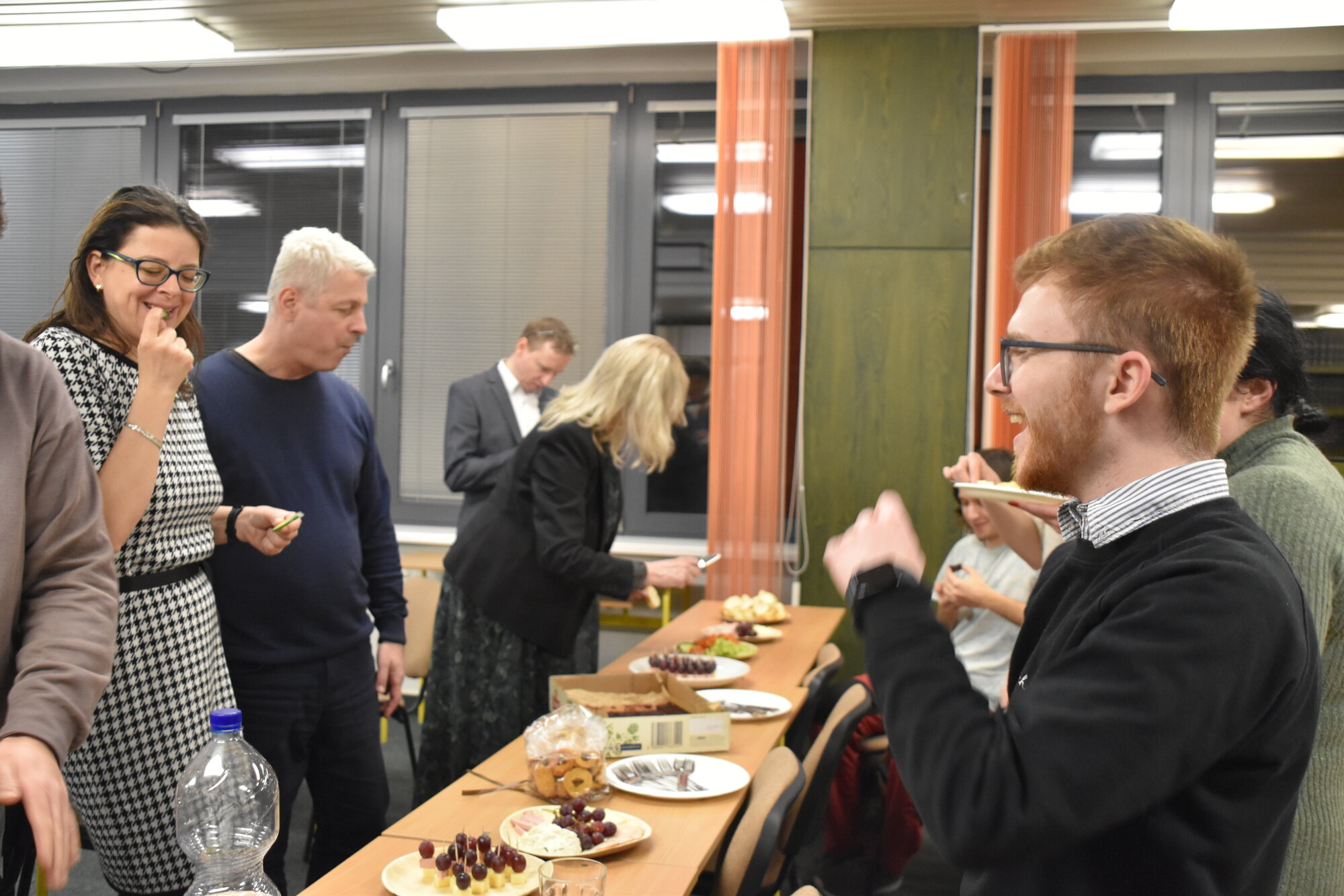 Po krátkom občerstvení pre pedagógov aj študentov sa program posunul na druhú tému večera, rozvrh. Na začiatok sme boli oboznámení s informáciami ohľadom e-rozvrhu a rozvrhu samotnom. Študenti sa dozvedeli, prečo máme e-rozvrh a nestačí nám iba rozvrh v AIS, aké faktory ovplyvňujú tvorbu rozvrhu, do akej miery je možné meniť rozvrhové akcie, atď. Nadväzujúca diskusia sa niesla v duchu problémov, ktoré študenti zažívajú so svojimi rozvrhmi a hľadali sa riešenia. Postupne sa diskusia preniesla aj k predmetom samotným a ich kreditovému ohodnoteniu, ich náročnosti a aj rozdieloch v hodnotení rovnakých predmetov, ktoré sú pre jeden študijný program povinné a pre druhý voliteľné.