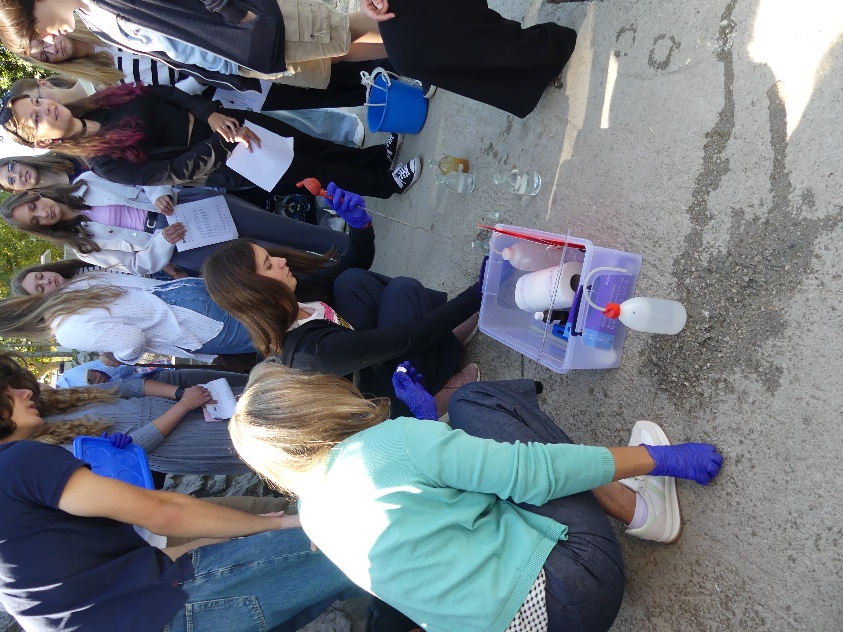Students work in four teams analyzing different water samples: Vrbas River water, tap water, bottled still water, and bottled sparkling water. Laboratory activities include comprehensive water quality parameter determination: